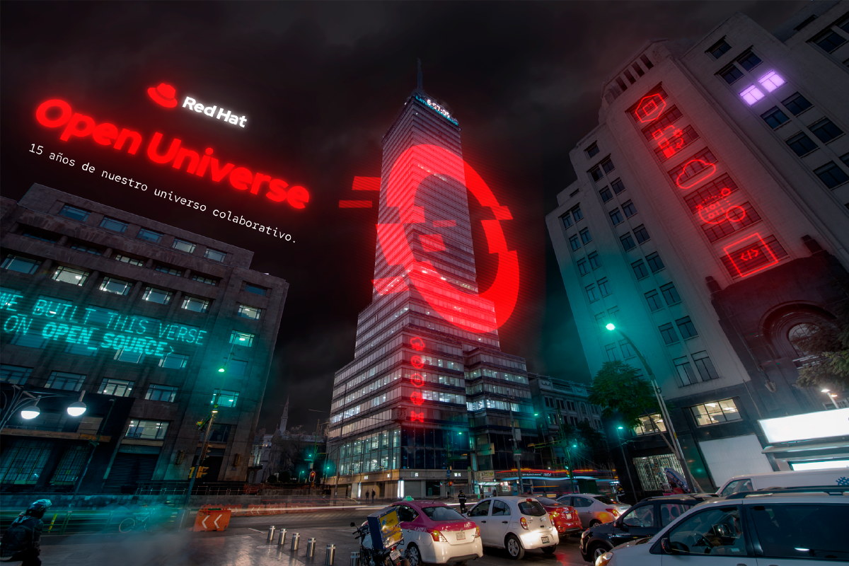 Red Hat, líder global en soluciones de código abierto, celebra 15 años de operaciones en México impulsando una visión colaborativa y acelerando la transformación digital de las empresas del país. Para conmemorarlo, transformamos el histórico ambiente barroco del Colegio de las Vizcaínas en una visión futurista digna de Blade Runner. Diseñamos una experiencia inmersiva con luces neón, proyecciones holográficas y texturas sintéticas inspiradas en la estética cyberpunk, fusionadas con el ADN de Red Hat para crear un universo visual lleno de simbolismos y reflejo del mundo futurista que la marca está construyendo en el mundo.